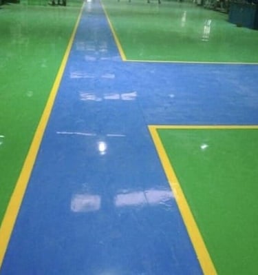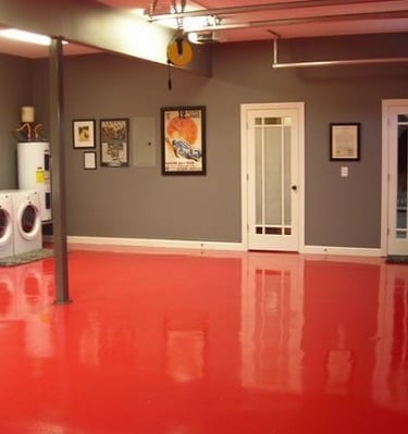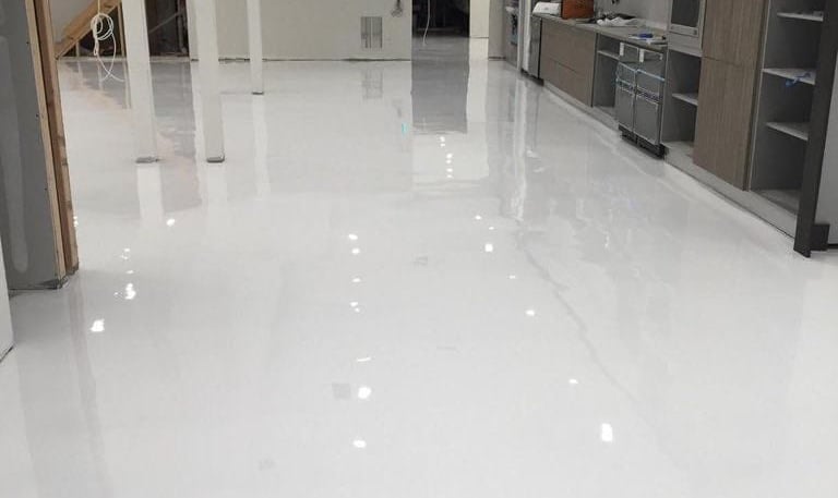 Transform your space with durable, glossy epoxy concrete flooring solutions.